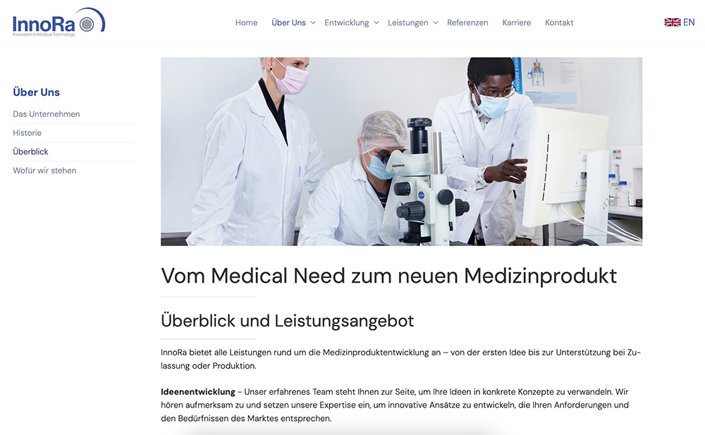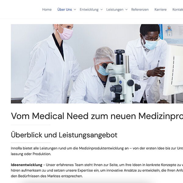 Ob Entwicklungsprojekte, Technologietransfer oder Beratungsleistungen – die neue Website von Innora bringt alle Inhalte präzise auf den Punkt. Eine durchdachte Struktur, sachliches Design und klare Sprache erleichtern den Zugang zu anspruchsvollen Themen.