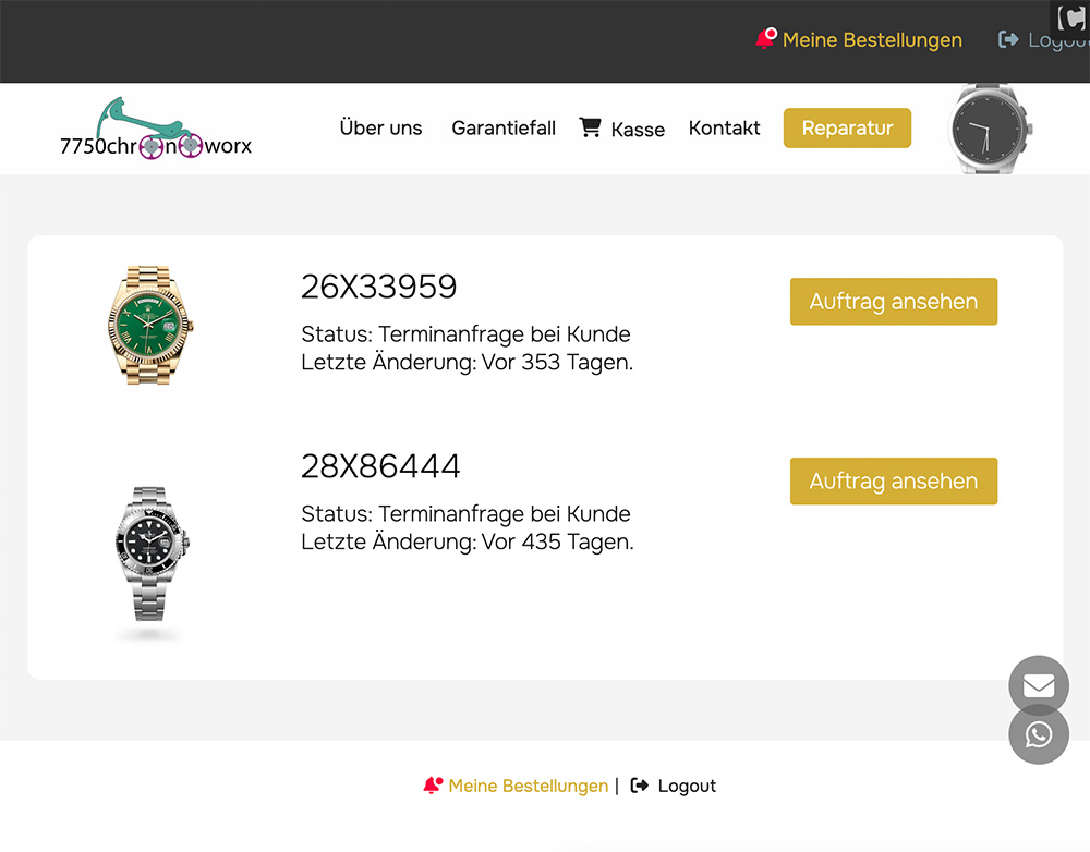 Beim Website-Relaunch von 7750 Chronoworx standen ein intuitives Auftrag-Portal mit direktem Einblick in den Reparaturprozess sowie ein zeitloses, hochwertiges Screendesign im Mittelpunkt – passend zum Stil der edlen Vintage-Uhren.