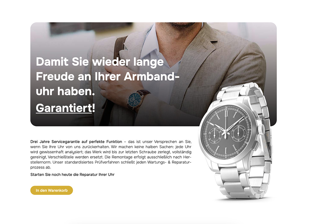 Die neue Website kombiniert ein edles, reduziertes Design mit moderner Technik. Farben, Typografie und Layout spiegeln die Hochwertigkeit der Marke wider – perfekt für Liebhaber klassischer Uhren, die auch online auf Stil und Klasse setzen.