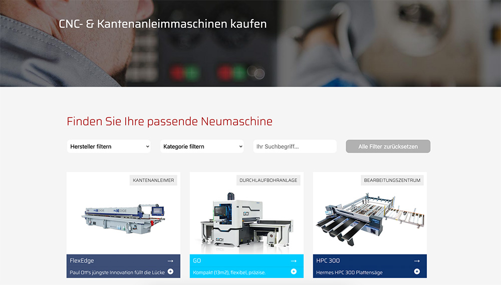 Mit der neuen filterbaren Datenbank finden Kunden schnell und gezielt die passende CNC-Maschine. Technische Details und Produktinformationen sind übersichtlich aufbereitet – das spart Zeit und erleichtert die Entscheidung erheblich.